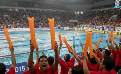 Warna balon yang cerah dan bentuknya yang unik membuat tribun terlihat hidup. Ketika penonton menepuk bersama, suasana menjadi meriah dan energik, meningkatkan pengalaman menonton yang menyenangkan.