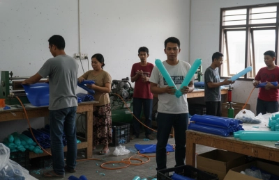 Kami memproduksi balon dari PE (Polyethylene) berkualitas tinggi. Bahan ini elastis dan kuat menahan tekanan, tetap menghasilkan suara tepukan lantang meski digunakan berulang kali.