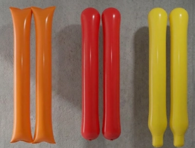 Balon tepuk menghasilkan bunyi nyaring saat ditepuk, menambah semangat penonton dan menciptakan suasana meriah. Warna cerah dan desain menarik membuat semua usia terhibur.