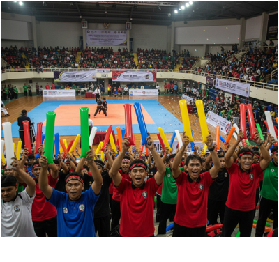 Balon tepuk menghasilkan suara kuat sehingga dukungan suporter terdengar lebih kompak dan suasana acara terasa lebih hidup.